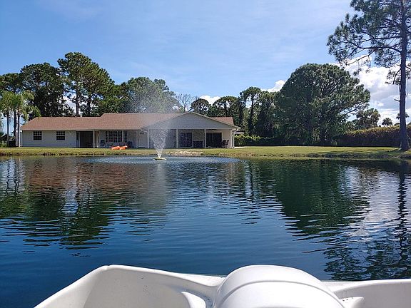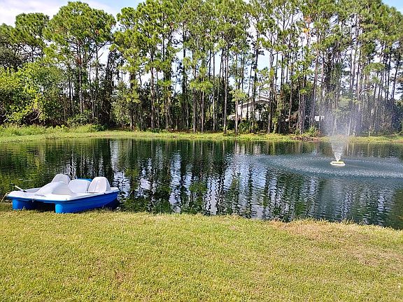 Recently renovated/updated 5 Bedroom, 3 bathroom home on 3 acres with a 3/4 acre private lake/pond. New roof, AC, appliances, and fixtures. Flagpole lot situated off of the main road with nature views from the oversized front porch. Main section of the house is a 3/2 with split floor plan. Maser suite has a large jetted tub, separate shower, and dual sink vanity. Guest quarters has additional living area and kitchen. Bonus room can be 5th bedroom or private office. Five minutes from Kennedy Space Center and easy access to SR 528.