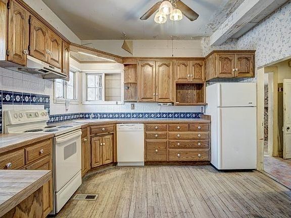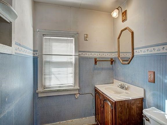 Huge corner yard with room to play! Size of 2 lots, 100 x 149. Mature trees on a spacious lot, and room for a circle drive! This is a stand out house in the neighborhood of ranch homes! Walk into the potential of this amazing home! Lots of square footage to make your own! There is an extra room on main floor that can be used as an office or bedroom since it has a closet! There are 4 bedrooms and full bath upstairs! The one car garage has a carport! Plus lots of parking area off the street. Its a walk out basement with staircase access! Makes the basement very usable space! Toilet and shower are available, just not enclosed in a room! Furnace is forced air to first floor only. Air is Freon cooled by water, not sure if it still works!
