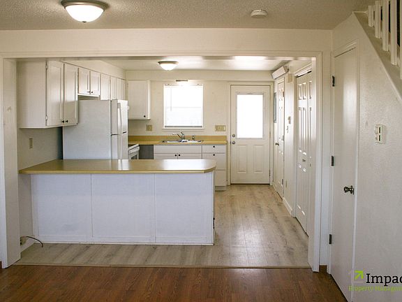 2 bed 1 1/2 bath located in East Kiowa available now! Living room has LVP flooring and flows directly into the kitchen. Kitchen cabinets have been updated along with newer stove. Lower level also includes a 1/2 bathroom and full size laundry hookups. Upstairs has 2 bedrooms and 1 full bathroom. Master bedroom includes a queen size bed frame (mattress not included, tenant may choose to remove bed frame at their discretion). Concrete back patio is located off the kitchen. Unit includes baseboard heat and 2 parking spots - 1 in front and 1 in back. 11 month lease minimum. NON SMOKING! Pets allowed upon approval and with a paid pet deposit. All utilities paid by tenant. Security deposit of one month's rent is due at signing. All applicants must average a minimum of 650 credit score and pass a background check. Verifiable income 2x rent required. Nonrefundable application fee of $30/adult.