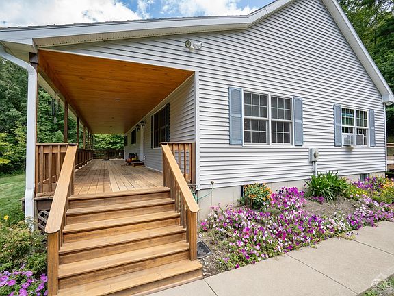 Your very own country escape awaits in the Hillsdale countryside. This ranch style home boasts a full length lighted mahogany front porch to watch the wildlife roam through your yard. The open floor plan between the kitchen, dining and living room is perfect for entertaining your guests while the sliding door to the back deck expands your space during the warmer months. Three generous size bedrooms with the primary consisting of an ensuite are situated at the opposite end of the house. A laundry/mud room provides access to the back deck. The full size dry basement offers additional space for finishing to your liking. This house is located close to Hawthorne Valley School and TSP, and 20 minutes to Great Barrington, Copake, Hudson, and Chatham.