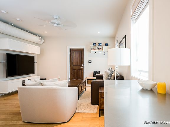 Located on a charming street one block from the Eastern Market metro, this fully furnished 1 bedroom, 1 bathroom condo has been supremely renovated to capture modern amenities and sleek urban style. This property boasts high-end finishes and modern features with loads of natural light, stainless steel appliances, granite countertops, hardwood floors, a king-sized bed, central air conditioning, an in-unit washer and dryer, a luxury bathroom, on the 1st floor. The bedroom includes a king-sized bed and custom-built closets. This complex has a great history as it used to be a single-family home of Francis Scott Key and George Washington dined in the adjacent manor house. 30 nights minimum stay