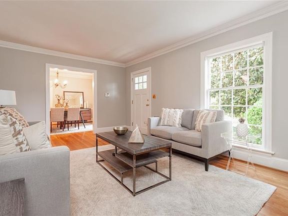 Charming bright home in popular Peachtree Park! Freshly painted in & out and ready to move into. 3 or 4 bedrooms plus sunroom/office, eat-in kitchen, separate dining room and large fireside living room. 2 bedrooms on the main with full hall bath plus 1/2 bath & laundry room. Master suite upstairs with additional flex room/office/4th bedroom! Bonus---2 car garage with drive to back! So convenient and desirable! Covered porch with tv for all your outside entertainment. Level, fenced back yard. Super home to entertain your guests. Basement utility room/storage. Neighborhood amenities include playground and kids playgroup, women's and men's clubs, dinner clubs AND nature trail including garden plots and 22-exercise station for all you fitness buffs! Great neighborhood to get around--no cut-thru traffic so you get to know all your neighbors in Peachtree Park! Come take a look-you wont be disappointed! Roof 12 years old; HVAC brand new!