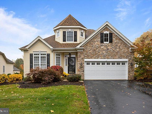 Are you hoping to live in a spectacular active adult community located between New Hope & Doylestown right here in beautiful Solebury Township? Fox Run Preserve has it all. Gorgeous single homes, walking trails, a clubhouse, and fun activities like book club, bridge, painting, & games. Located toward the back of the community, 615 Den Lane is proudly offered at the end of a quiet culdesac with scenic views of surrounding woodlands. This Montclair model, built by DeLuca in 2003, boasts over 3,000 square feet of luxurious living spaces. From the foyer, you’ll admire the newer gleaming hardwood floors and wainscoting through the dining room and hallway. Much of the home has been recently painted. Flooded with light, the white kitchen with contrasting granite counters is open to your entertaining areas, so you’ll never miss a minute of the game or a moment of the conversation. The hardwood floors continue through the great room with abundance of seating possibilities for gathering around the cozy gas fireplace. A spacious second story balcony overlooks Bucks County’s vibrant fall foliage - and has convenient hose water access for easily watering your plants. With newer carpeting, the sprawling primary suite has ample space for even the largest bedroom set, impressive tray ceiling, plus not one but two walk-in closets! Even the soaking tub has wainscoting in the bathroom. There’s a private water closet, separate vanities, linen closet, and stall shower. The powder room has been tastefully renovated and the convenient first floor laundry opens to the two-car garage. The second and third bedrooms have quite large closets and share a sunny hallway bathroom. The open loft spaces offer endless possibilities! The daylight, walk-out basement was built with entertaining in mind. You and your guests of all ages will enjoy the gathering spaces, the kitchenette, the bar area, and games of shuffleboard. Or walk outside to enjoy grilling, gardening, or eating dinner al fresco. In close proximity to restaurants and museums, a short drive from attractions along the Delaware River, this is the perfect retreat for your next chapter.