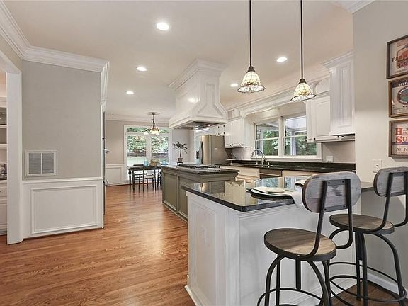- Kitchen Features: Cabinets White, Breakfast Bar, Breakfast Room, Second Kitchen, Eat-in Kitchen, Stone Counters, View to Family Room, Kitchen Island, Pantry Walk-in