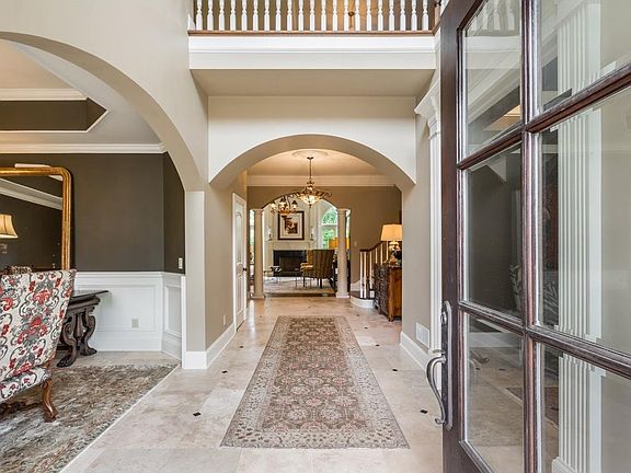 - Interior: 10 ft+ Ceil Main, 2-Story Foyer, Double Vnty Other, Trey Ceilings, Bookcases, Exposed Beams, 10 ft + Ceil Upper, Rear Stairs