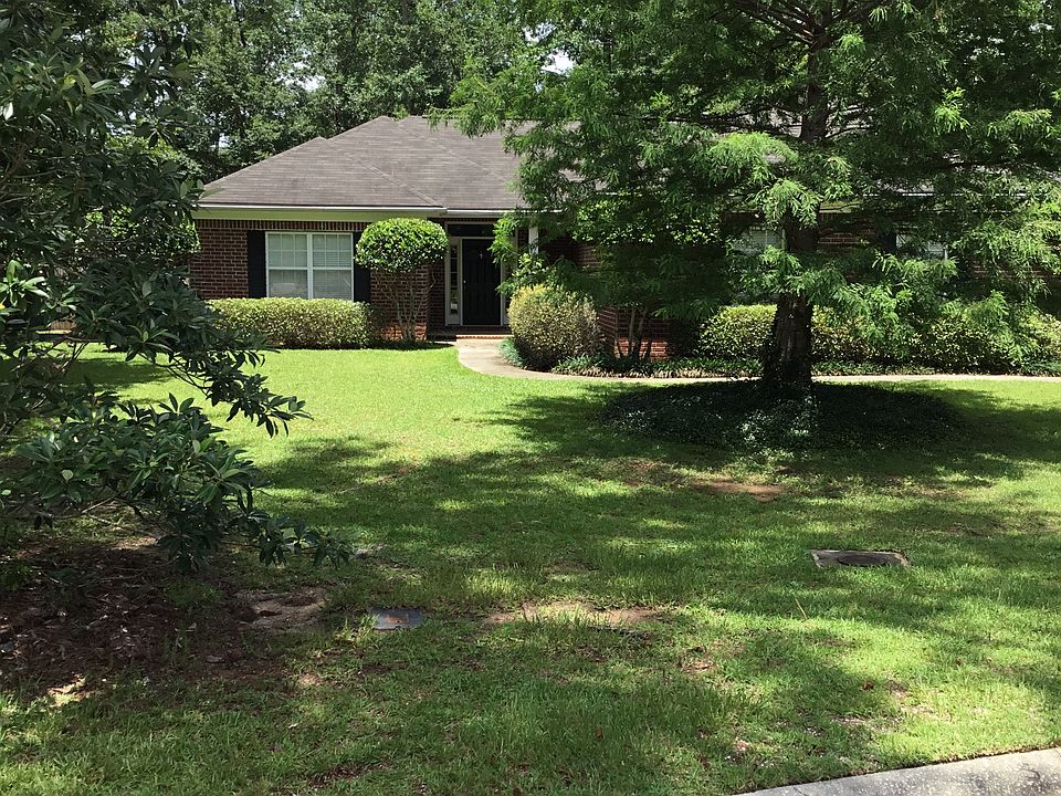 Custom built home on established cul-de-sac. Open floor plan with turtle back ceiling in living area. Gas fireplace, crown molding, 9 foot ceilings and ceiling fans. Kitchen has plenty of storage and a pantry. Nice side by side fridge conveys. Both, screened porch and open patio on back of home with gas connection for grill. Split bedroom plan, master bedroom has a walk-in closet for her and large regular closet for him, master bath has both garden tub and separate shower, separate 36" height vanities and 17" height toilet. Both baths have tile floors. Front bedroom is designed to serve as either a bedroom or office, has double french doors and closet. Oversized garage (23' depth by 21 1/2' width) and a separate tool room/storage (10' depth by 6' width) which is heated/cooled on the back of the home, it has double steel doors with a doggy door installed on one side. Yard is established with mature shrubs and satsuma trees and has a separate storage shed for storing lawn equipment, yard tools, gas, etc. No inside pets, non smokers. Contact by email or (251)978-4670. Buyer agents welcome.
