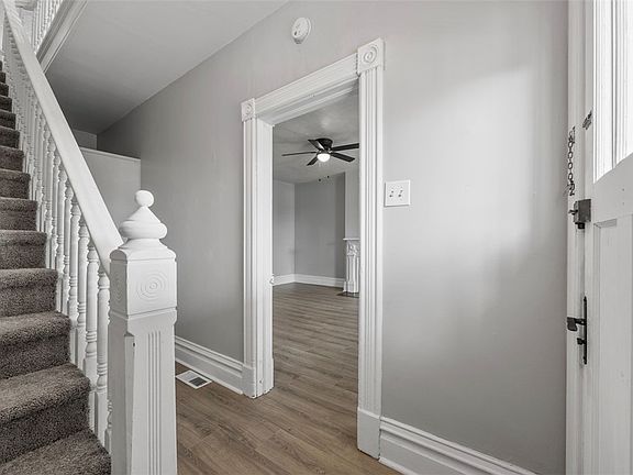 Move right in to this thoughtfully renovated 2 bedroom, 1.5 bath home, where modern updates blend seamlessly with classic charm. The bright and inviting main floor features new flooring, fresh paint, and a spacious living room with a decorative fireplace. The updated kitchen boasts white cabinetry, granite countertops, and ample storage. A convenient half bath and first-floor laundry complete the main level. Upstairs, you’ll find a refreshed full bath and two spacious bedrooms, including a primary bedroom with its own decorative fireplace—adding character and warmth to the space. Outside, enjoy the charming front porch, a backyard ready for your personal touch, and the added bonus of off-street parking in the rear. Conveniently located near shopping, dining, and major roadways, this move-in-ready home is a must-see!