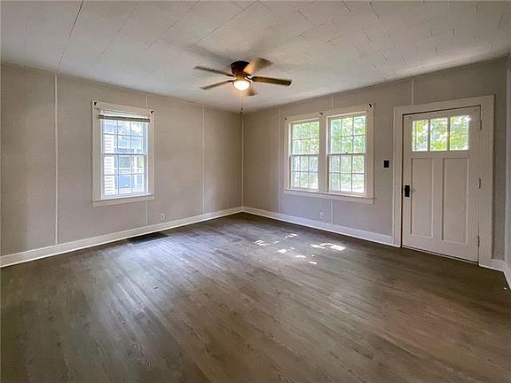 Remodeled 1.5 Story Home on a corner lot. Large living room with ceiling fan, formal dining room with lots of built ins cabinetry. Kitchen with oven/range included, Main floor bedroom and fully renovated bathroom with walk in shower and tiled floors. 2 more bedrooms on the second level both with ceiling fans. New waterproof vinyl flooring throughout main level of the house and new carpet on second and third bedrooms. Newer central heating and cooling systems. Nice fenced backyard with extra deep garage and attached carport.