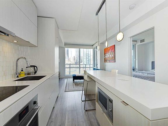 Welcome to this beautifully designed 1-bedroom plus den condo in The Verve, one of East Village’s most desirable buildings. Perfectly positioned on the 11th floor, this home offers bright, modern living with stunning west views of the downtown skyline. The open floor plan features 9-foot ceilings and floor-to-ceiling windows that fill the space with natural light. The sleek, contemporary kitchen features quartz countertops, a central island with a breakfast bar, stainless steel appliances, an electric cooktop, a built-in oven, and a stylish glass tile backsplash, an ideal setup for cooking or hosting friends. The living room offers the perfect place to unwind at the end of the day, with easy access to your private west balcony, an incredible spot to enjoy sunsets and warm summer evenings. The large primary bedroom provides a quiet retreat, while the spacious den offers the perfect home office, guest room or flex space. A well-appointed 4-piece bathroom and convenient in-suite laundry complete the thoughtful layout. Stay comfortable year-round with central air conditioning, and enjoy the convenience of titled underground parking. Residents of The Verve enjoy access to premium amenities, including a fitness centre, guest suite, party room, rooftop patio, and recreation lounge. This unbeatable location is steps from the Riverwalk Pathway system, Prince’s Island Park, Studio Bell, and the Central Library. Superstore, Bow Valley College, and countless shops and cafés are all just minutes away. Whether you're a professional, first-time buyer, or investor seeking vibrant urban living, this home offers an exceptional opportunity. Don’t miss your chance, book your showing today!