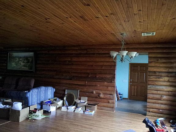 Log home with 2 car attached garage, rustic interior. Sits on 80 acres lots of level pasture and plenty of woods for hunting.