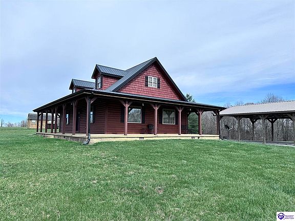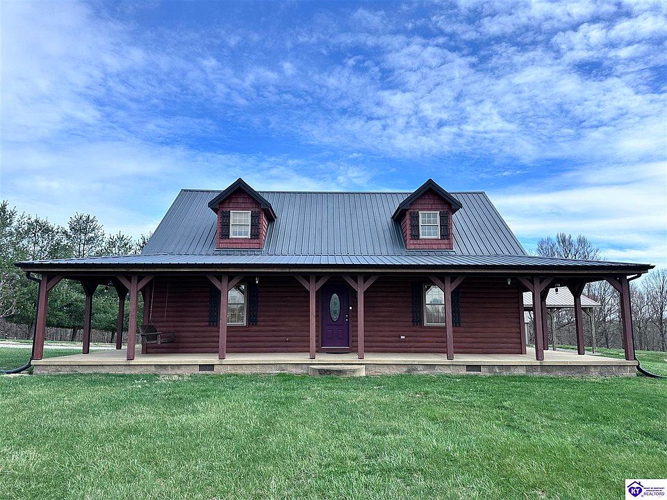 Wake up every morning feeling like you're on a retreat! This gorgeous cabin in the country has everything you need; you'll never want to leave home. Welcome to an oasis of serenity on E Poe Young Rd located in Central Kentucky. This amazing property provides quiet country living, yet only about 10 minutes from town. This home offers 3 bedrooms, 2 full baths, open concept living area, eat-in kitchen with a custom built stone island, gorgeous stone gas fireplace, beautifully designed vaulted ceilings, custom blinds on all windows, main bedroom connects to the main bath and provides a laundry closet with washer & dryer that remain with the property. You'll love the third bedroom loft that offers amazing views off the front and the side of the home. On the exterior, you'll adore the wrap around porch where you can enjoy nature's beauty from every angle of the property. There are 9.52 acres m/l with enough land cleared for horses or cattle, and some is partially wooded for hiking, hunting, and horseback riding, and a pond for fishing. Property also provides 2 carports, and 2 outdoor buildings/sheds, a charging station for electric vehicles, and an RV hook up. Exterior of cabin was re-stained within the last 1.5 years. All appliances remain with the home, including the porch swing, the porch glider, 1 outdoor table & chair, and the kitchen barstools. This property literally has it all! From sunrise to sunset, this peaceful haven will leave you feeling blessed and refreshed. This property won't last long, so contact me to view. Data believed correct, but not yet verified. Buyer to verify data prior to offer.