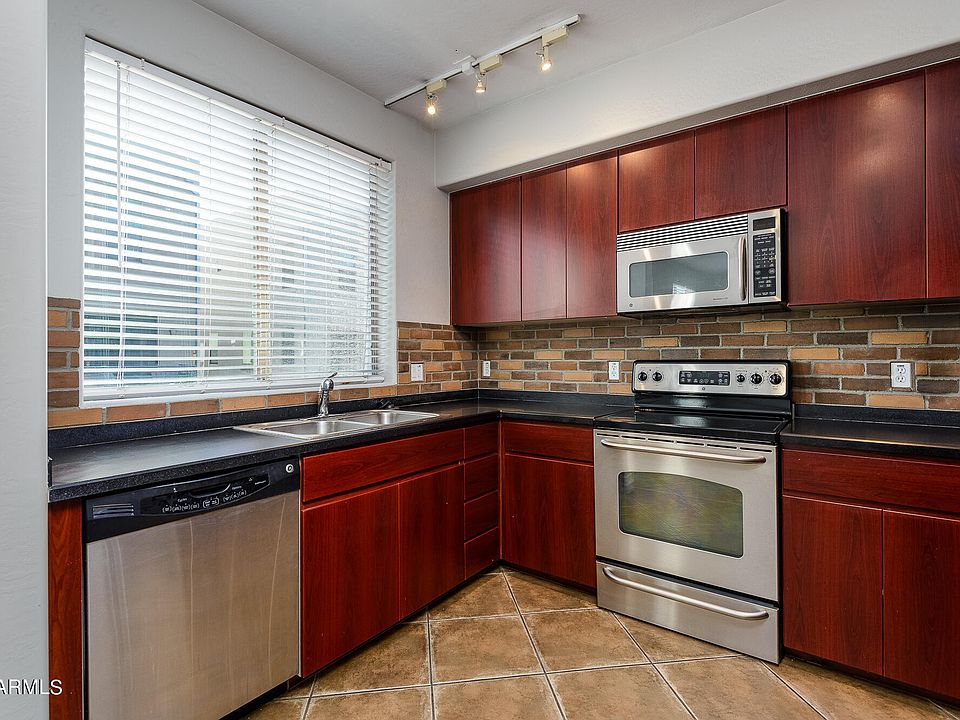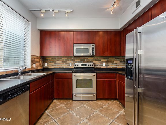 TOP FLOOR UNIT! This means no upstairs neighbors walking around keeping you up! The Artisan Village Condo complex in Roosevelt Row is close to EVERYTHING. ASU, Museums, Art galleries, Record stores, Chase Field, tons of nightlife, bars, incredible food, and tons of coffee. This 2 bedroom, 3 bath , 1288sqft unit faces directly on to 5th st, so it's in the middle of it all. This unit also features a two car tandem garage, large modern kitchen, tons of natural light, open floorpan, and front patio/outdoor space that sits off the street for some privacy if you'd like. The desirable split foorplan has the primary bedroom and second bedroom upstairs.