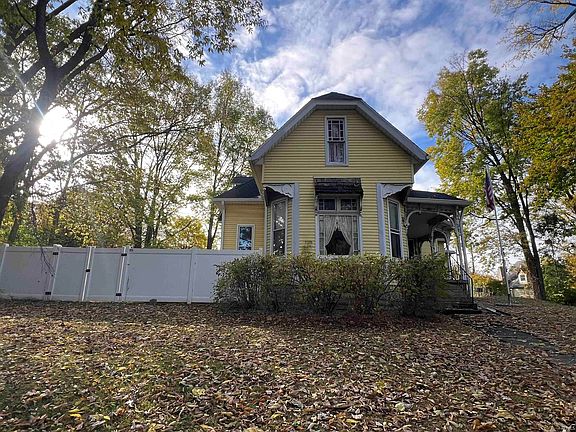 Charming 1.5-story home featuring beautiful original woodwork, trim, windows, and hardwood floors. Enjoy 10-ft ceilings, 5 spacious bedrooms (3 upstairs with extra space and 2 on the main level), and 2 full baths—one fully remodeled. Several rooms offer fresh drywall and new paint. Roof is approximately 10 years old, with new leaf guards installed in 2023. All appliances, including front-load washer and dryer, remain, along with window treatments, dining table with 6 chairs, matching hutch, and bookcase with books. Alarm system, riding lawn mower, and newer shed/outbuilding stay. Relax in the backyard with a white vinyl privacy fence and gazebo—perfect for outdoor enjoyment!