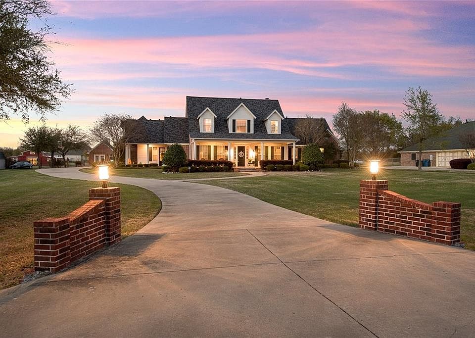 A true Sunnyvale custom on 1.7 acres. Tremendous thought and care went into the construction of this home... wood floors from an East Texas school house built in the early 1900s.. solid-core interior doors.. extensive custom trim work throughout.. 3 fireplaces, including a beautiful custom fireplace in the kitchen and breakfast area.. beautiful kitchen with island, custom cabinets, farmhouse sink, granite counters, and walk-in pantry.. 3 car garage.. detached storage with power.. 4 separate ac units for the 1st floor living, master bedroom, upstairs bedrooms, and the upstairs game room.. beautiful porches and swimming pool. This beautiful home will not disappoint.