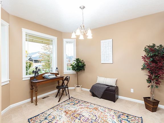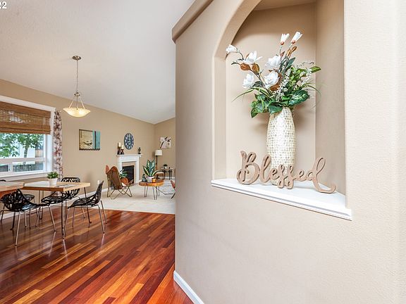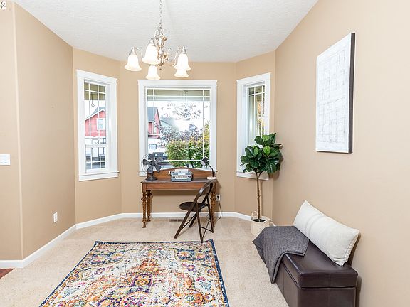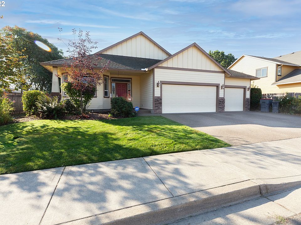 This beautiful home is located on a quiet street in the charming town of Carlton. Cherry floors and stainless steel appliances make the hard wood cabinets pop. Vaulted ceilings throughout create open and bright living spaces. Huge 3 car garge. Yard has mature landscape and nice concrete work. Custom awning protects patio from sun for morning and evening enjoyment. The work shed in the back is large enough for your projects and storage!