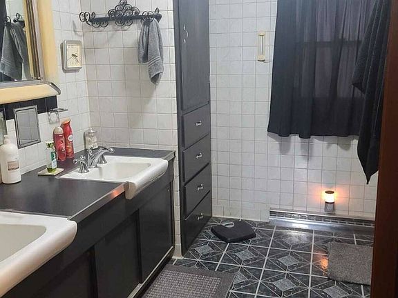 Living Room: Real hardwood floors, painted walls. Very large room - lots of windows. Kitchen - Dining Area: Painted wood cabinets, built in range and extra wall oven, lots of cabinets, built in bar. Large enough to sit 6-8 people. Tile flooring, painted walls. Bath: Double vanities, tile flooring, large linen cabinet with drawers, tub/shower combo. Master Bedroom: Big enough for a king size bed and dresser, chest of drawers, plus a large closet, carpet. Bedroom: Painted walls, carpet, large size room, nice size closet. Basement: Tile flooring and painted walls. Lots of storage upstairs and in basement, GFA and CAC are 1 1/2 years old, water heater is newer, roof in good condition, breezeway between house and garage, 32' x 32' concrete block garage.