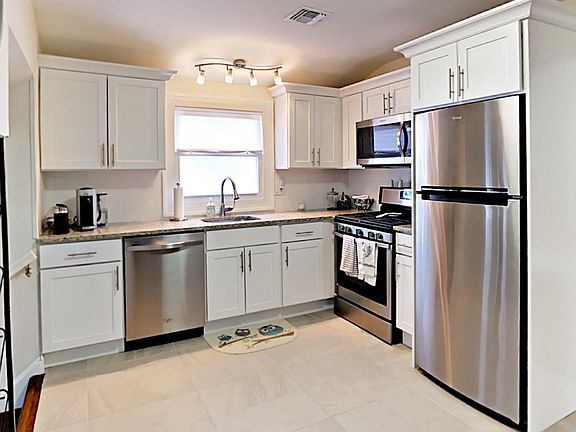 Welcome Home! This 3 bedroom 1.5 bathroom split level home is completely renovated from top to bottom. Beautiful Hardwood floors throughout. Newly renovated kitchen with stainless steel appliances, New soft close cabinets and granite countertops. Off the kitchen there is a bonus room with a cozy woodburning stove and refinished half bath. Upstairs there are 3 nice size bedrooms. The main bathroom has been completely updated as well. This home also has new windows, furnace, AC and hot water heater. The backyard is a private oasis that is fully fenced in with a pool and 2 tiered deck.Convenient to major roads and just a short drive to the beach. All you have to do is unpack!
