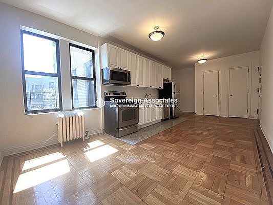 Open-plan 3 Bedroom with great light in the heart of Hudson Heights. Airy, open plan 3 bedroom featuring full-size stainless steel appliances including dishwasher and microwave. Lovely hardwood floors throughout, plenty of natural light, good closet space and a granite kitchen. Bedroom 1: 7' 9 1/4" x 12' Kitchen and Living Room: 11' 1 3/4" x 22' 4 1/2" Bedroom 2: 10' 11 1/4" x 15' 7 3/4" Bedroom 3: 19' 2 3/4" x 11' 8 3/4". Building features: +Elevator +Laundry in building +Attentive live-in Super +Security cameras +Pets Allowed +Guarantors Allowed +P.S. 187 school district Building is right next door to grocery shopping, restaurants, cafes and many shops and services. Cafe Buunni for Ethiopian-style coffee and food, Frank's Market for all your grocery needs, Fresco's Pizza for excellent pizza, Refried Beans for Mexican food, Tampopo Kitchen for excellent Japanese fare, Dutch Baby Bakery/Cafe, and the long-running Kismat for Indian cuisine are all around the corner. The A express and C subway lines are very close and the local 1 line accessible 2 stops south on the A at 168th St. M4 & M98 buses right in front of the building on Fort Washington Ave. Nearby Fort Tryon Park offers 67 acres of natural surroundings and is just a couple of blocks away. Within the park are the Bonnefont Restaurant, the Cloisters Museum and the Heather Garden- offering hundreds of different plant species to enjoy.