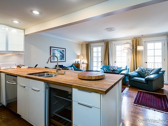 This fully furnished 2-bedroom townhouse is located in the Southwest Waterfront neighborhood. The first floor has a single car garage, laundry room with front loading washer and dryer and a 10x20 room with bookshelves with french doors to the back pati...