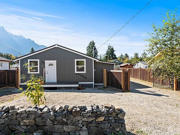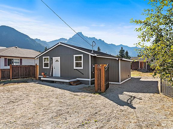 Beautifully Remodeled Home with Stunning Mountain Views! This charming 2-bedroom home has been completely remodeled and thoughtfully updated with modern finishes throughout. Enjoy breathtaking mountain views from the comfort of your backyard. New laminate hardwood floors, updated electrical, plumbing, and windows! The vaulted ceilings make for the perfect blend of comfort and style. Plenty of parking with alley access. Located in the peaceful setting of Darrington, this home is ready for its new owner to move right in!