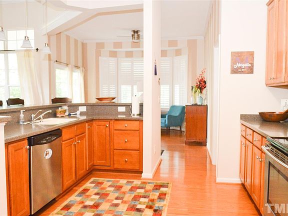 Gorgeous open floor plan with rare FIRST FLOOR MASTER BEDROOM with private bath, garden tub, separate shower and huge walk-in closet. Three full baths Beautiful trim work throughout. Plantation shutters, hardwood floors. Large bright kitchen open to main living area. Gas fireplace. Rocking chair front porch and the rear deck overlooks fenced back yard. Washer/dryer convey. Two car garage. Highly desirable neighborhood. Convenient to everything! Shopping, dining, easy access to I-40.