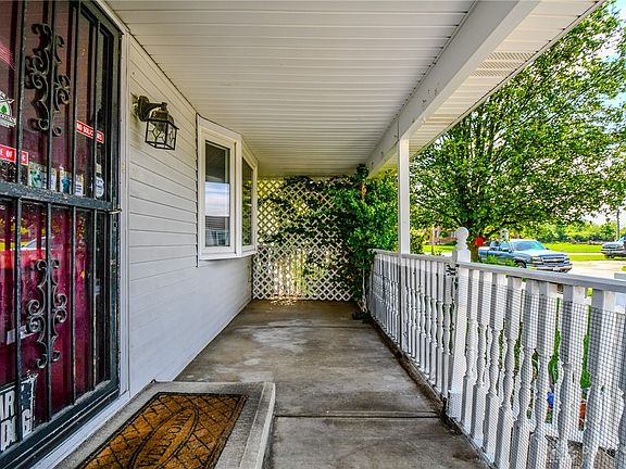 Darling 3-bedroom 2 bath ranch with full finished lower level offering 3 more rooms! Enjoy your covered front porch! As you enter the spacious living room with Champion Bay window you will see the eating area at the far end of the living room. Beautiful, remodeled galley kitchen offering refrigerator, range, microwave, disposal and plenty of lite colored Maple raised panel cabinets with pull out drawers. The kitchen sink has new plumbing. August 2024 stackable washer and dryer conveniently located on the first floor. Laminate flooring in all 1st floor rooms except the bath. The updated hall bath offers a deep tub with tiled walls, 2024 commode, tiled flooring, pedestal sink and 2 medicine cabinets. Ceiling fans in every 1st floor room including the bath. Fabulous lower level offers 20’x11’ rec room, study/craft room with plenty of shelving and fitness room; all 3 rooms carpeted. Huge utility room has May 2023 HVAC, 2008 water heater, cast iron double utility tub and 2010 washer and dryer (not warranted, believed to be operable). In addition to all this there is a full bath with shower, breaker panel and glass block windows. 20’x10’ enclosed back porch has handicapped ramp and the original steps to the house under the ramp. The total fenced backyard has a nice paver patio just off the home and a larger paver patio behind the 1 car detached garage. The garage has an opener and some storage. Gutter guards on the home. All this and 1 year Advantage home warranty that is already in place.
