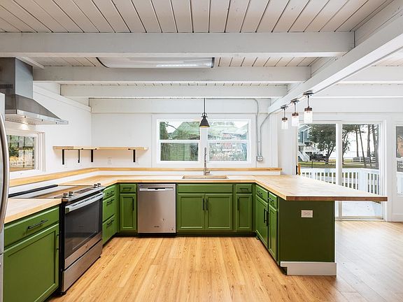 Affordable, modern, upgraded and soundfront! This home sits on an elevated ridge that boasts tremendous sound views. The large lot has many possibilities to enhance this already serene and private atmosphere. Built as a coastal contemporary style, this home has been fully renovated on the inside, with updates that include, but are not limited to, an updated kitchen, new flooring throughout, interior paint, and an added half bathroom.  Set up as a split-level layout, the downstairs has a great room, dining area, and an updated kitchen.  There is access to the rear deck that flows seamlessly into the huge backyard.  The mid-level has two bedrooms and a full bath at the end of the hallway.  Both bedrooms have amazing water views and one of the bedrooms has a cantilevered deck off the side.  The third bedroom is located at the very top level and has an additional storage area connected to it. This home would make for a great primary, 2nd home, or short-term rental investment property.  Not often you see something so unique at this price point, schedule a showing today!