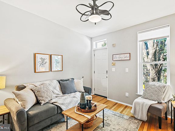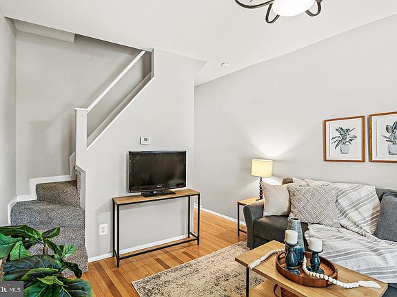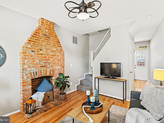 Federal Hill 2 bed, 2 bath rowhome with incredible water views from the roof deck. The cozy living room offers plenty of natural light, NEW hardwood floors, and a decorative brick fireplace. The kitchen has been updated with stainless steel appliances, cabinetry, and fresh lighting. Upstairs is a large bedroom with an attached bath and walk-in closet. The rooftop deck provides views of the Domino Sugar sign and the Inner Harbor which can be easily accessed, as the entrance is located off the 2nd floor hallway. Additional square footage is found in the fully finished lower level that can be used as a second bedroom, den, or office. There is lots of flexibility for the space due to a private entrance from the street, a full bath, and 2 closets. The home has been freshly painted from top to bottom, with new carpets and hardwood floors. Additional upgrades include windows (2022), furnace (2017), hot water heater(2022), deck steps and railings (2023), washer/dryer (2023), kitchen (2023), lighting, and more!