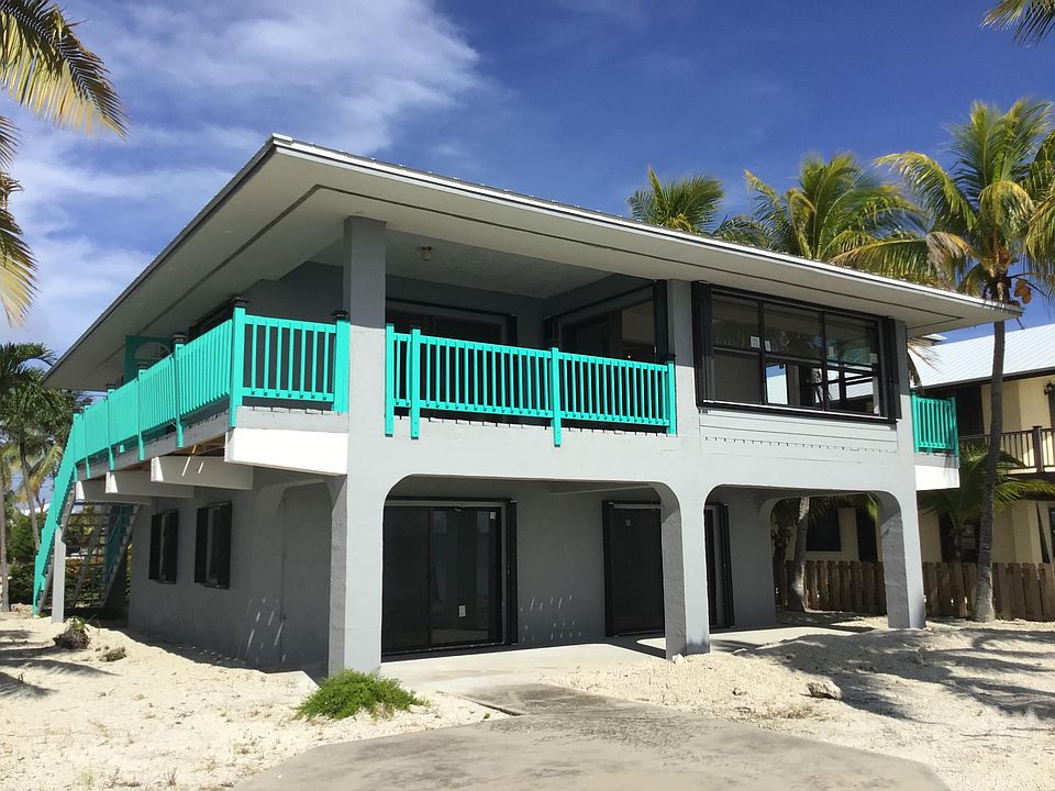 Spectacular sunrise ocean views across Newfound Harbor. Living the inspiration , sounds - views, of open water property from this sturdy concrete block and steel elevated home on an extra large lot. New accordion shutters with a metal roof, walk around deck, permitted downstairs laundry, bath, and rec room. The interior features a new kitchen with quartz counters and new appliances plus an interior elevator. New renovations to the baths upstairs are underway. Other outstanding features include a small beach for kayak, and paddle board access, and cool ocean breezes. Dock was destroyed by Hurricane Irma and is ready for replacement. Low flood insurance rates! This house is on the open water in an AE flood zone.