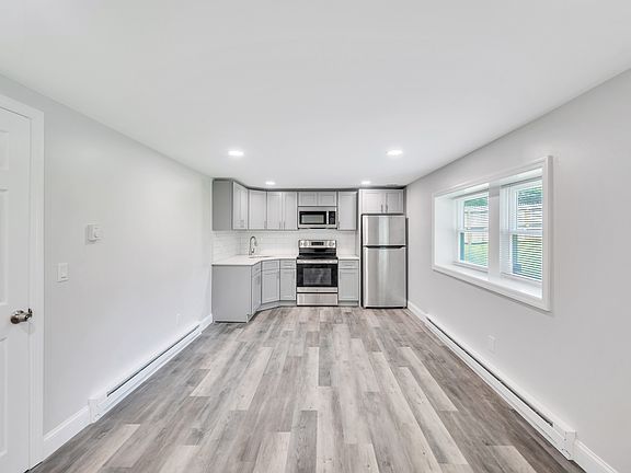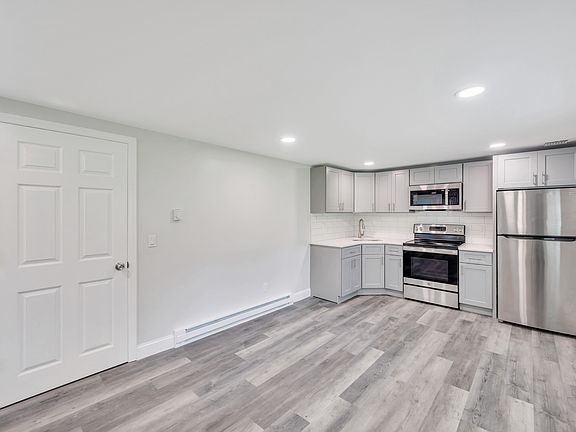 Experience modern living in this newly renovated lower-level unit featuring sleek quartz countertops, premium stainless steel appliances, and a stylish, contemporary bathroom. The bright, spacious bedroom offers a cozy retreat, while washer/dryer hookups add convenience. Enjoy electric heating and private backyard access, perfect for outdoor relaxation. No pets allowed. Residents are responsible for electric utilities. Min 1 year lease, tenant pays electric only, water payed by owner
