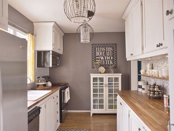 BE PREPARED TO FALL IN LOVE! This turn-of-the-century home sits on a hill behind Trinity Hospital and is filled with character and charm! There have been many updates and renovations including the addition of a half-bath and large bonus room on the main floor. The newly updated kitchen includes butcher-block countertops, white cabinets, glass tiled backsplash, gorgeous light fixtures, stainless steel appliances, and laminate flooring. There is a formal dining room off the kitchen that is large enough to entertain your family and friends! A favorite feature is the original hardwood floor and large bay window in the living room. Laminate flooring continues throughout the hallway and the entire upper level where all three bedrooms will be found. The master bedroom is extra-large with a unique skylight window. Bedrooms two and three are also good sized and bedroom two also features a skylight window. The full bath on the upper level has been updated and features laminate flooring and a sliding barn door. The creative paint colors, unique light fixtures, stylish wallpaper, and d�cor make this home absolutely stunning. You won�t want to miss it!
