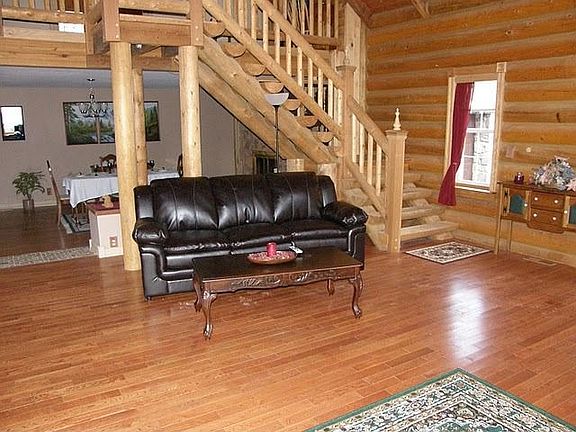 Beautiful landscaped 4 Bedroom 3 Full Bath Log Cabin Home with Wood Burning Fireplace. On 2.6 Acres of Land Backed By The State Game Lands. Property Originally Built In 1960's. This Gorgeous Newly Engineered Designed Log Cabin Home Has Been Taken To The Limits Of Beauty! "10 Inch Ponderosa Pine-Insect Treated For Life. Inside Composite Chinking Already Exposed. Molding Is RED OAK. Exterior Trim Is PHILIPPINE MAHOGANY and COPPER FLASHING. Along With The Bedrooms On The First Floor You Will Find An Additional Washer And Dryer Area With "18 by 18" Porcelain Tiles And upgraded Bathroom With A New Hardwood Floor. The Third Bedroom Or "Office" Is A Delightful Bright Sunny Room. The Upstairs Is The Most Recent Addition. Huge Loft Accompanied By A "21 by 22" Bedroom. The Adjoining Bathroom Has Dual Individual Vanities, GLASS BLOCK Shower/Custom PORCELAIN Tiles, Jacuzzi. In Addition, Dual Septic Tanks-emptied and certified by the Board of health Dual Central Air systems. Dual Forced Air And Oil Heat. HOME WARRANTY !