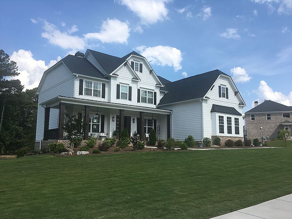 A beautiful single family farmhouse style home located in Blue Valley. Located on a quiet cul-de-sac overlooking the lake. 10ft ceilings and extra bedroom on main level. A large open family room with floor to ceiling stone fireplace, two story windows and built in book shelves. Walk-in pantry with custom shelving. Oversized kitchen island and eat in kitchen. Floor to ceiling cabinets. Quartz counters throughout kitchen and bathrooms. Second floor laundry room loaded with cabinets, counter and sink. Washer and dryer connections for gas and electric. Friends porch entrance and mud room. Oversized 3 car garage with additional storage shelving. Security system. Double vanity master bath with oversized shower stall and freestanding soaking tub. Walk-in master closet with excercise center. Custom closet systems in all bedrooms. All rooms are wired for TV, telephone and computer. Additional side basement entrance. 9ft basement ceilings. Walkout double French basement doors to a flat one acre yard, stunning heated in-ground shock Crete salt water pool, gas fire pit, bluestone patio and covered under deck seating area. Fenced in yard. Enjoy fishing in the backyard lake. This home has a huge wrap around front porch and swing to relax on and a large 350sqft deck overlooking the pool and lake. Landscape lighting throughout the property. 3 zone heating and cooling. Pull down attic stairs with extra storage. Amenities include playground, pool and pool house, tennis courts, gated community. City water and city gas, 8 zone irrigation system. Efficient tankless hot water. All underground utilities. Emergency generator hook-up. Energy Star Home.