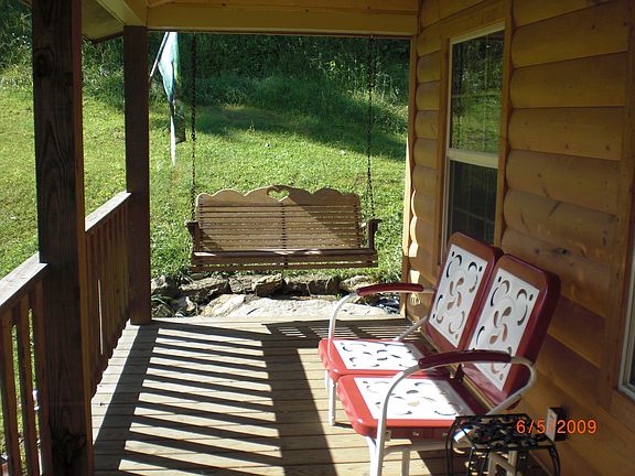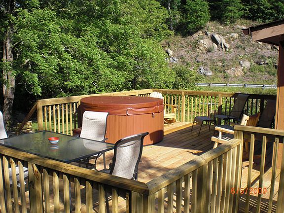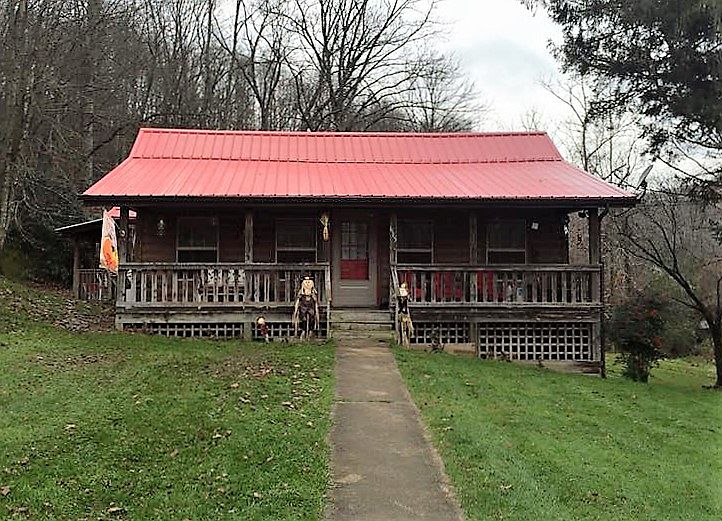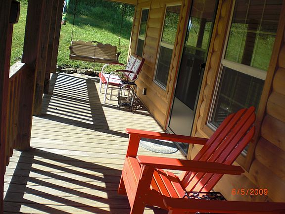 Cute home on the creek w/waterfall. Great deck. Just added new red metal roof.