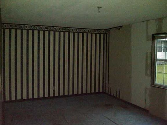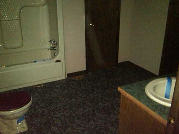 Exterior Features: Exterior: Two story grey home with white trim looks to be in good condition, curb appeal is nice and doesn’t appear to have any major damage present. Siding: Exterior wall is made of wood/vinyl and looks healthy & clean. Windows: Intact. Soffits and Eaves: Intact. SF: (Lot) Unknown. SF: (Home) 2800. Patio/Porch: Small covered concrete porch in front of house. Roof: Asphalt shingle, looks to be in ok condition, has blue tarp over small portion. Driveway: Concrete. Interior Features: Interior: Home appears to be in good condition, only cosmetic fixes needed, no puncture found in walls, looks clean & healthy overall. Living Room: Wallpaper has been somewhat removed, carpet has small stains, looks in decent condition. Dining Room: None. Kitchen: Tile floor, cabinets & sink are in place, walls are in fair shape, room looks nice. Bathroom: (1) Tile floor, white walls, toilet, tub, sink, looks in good shape (2) Tile floor looks good, green walls, toilet, tub, & sink, room looks fine. Bedroom: (1) Yellow walls, white trim, red carpet, is in good shape (2) Purple walls, white trim, blue carpet, room looks healthy. Basement: None. Mechanics: Hot water heater. Garage: None.