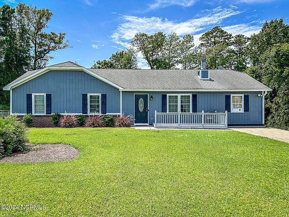 Nestled in the heart of Morehead City, this delightful 3-bedroom, 2-full bath home offers the perfect blend of comfort, convenience, and character. Located in the tranquil Mandy Farms subdivision with no HOA fees, this residence promises a peaceful retreat with easy access to all the amenities of coastal living. Situated on a quiet street, the home welcomes you with a quaint front porch, inviting you to unwind and enjoy the serenity of the neighborhood. Outside, the workshop/shed with electricity and A/C makes it the perfect space for storage, projects, or hobbies. Exterior freshly painted in July 2024. Conveniently located near Cherry Point MCAS and the pristine beaches of the Crystal Coast, this home provides easy access to both work and play. Whether you're seeking adventure or relaxation, this is the perfect place to call home. Don't miss your chance to experience the charm and comfort of this sweet property by scheduling a showing today.