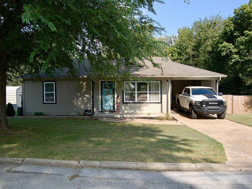 Move in ready 2 bedroom; 1 bath home with carport and a nice sized privacy fenced back yard. Home features hardwood floors in living area and bedrooms; gas fireplace and a large utility room. Bedrooms feature roomy closets! Flooring in kitchen, dining, bathroom and utility area is newer. The large utility area provides additional storage or any office space. it also contains trap door access to the basement area. Basement can also be accessed from back yard. Enjoy the nice screened in back deck while the kids and dogs play in the backyard!