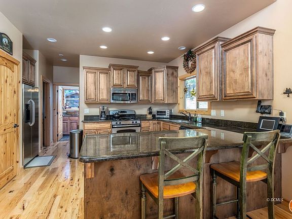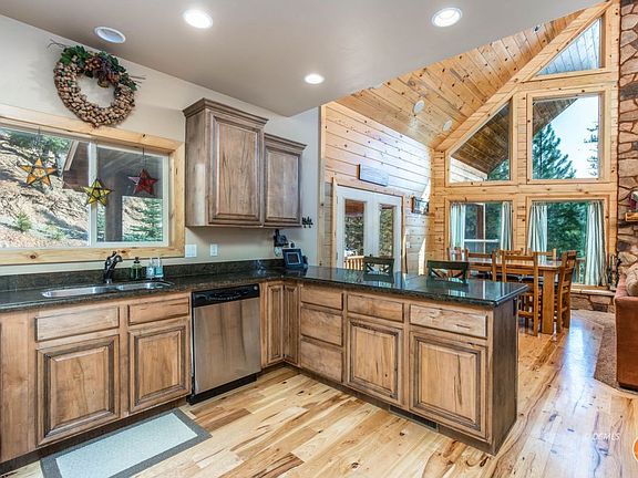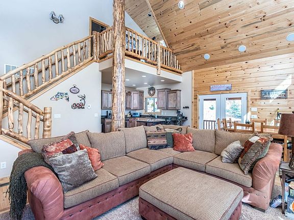 This gorgeous home welcomes you with soaring ceilings, large windows and floor to ceiling fire place.Great open floor plan, three levels and bedroom and bath on each floor. The master suite boasts of views, walk in closet, double vanity and jetted tub with loft office area. Enjoy the impressive panorama of the Swains Creek meadow from the large covered decks. Upper and lower decks, basement game room and wet bar are perfect for mountain entertaining. Detached 16x20 pull through shed for your toys plus additional smaller for tools. Furnishings and snowmobiles negotiable.