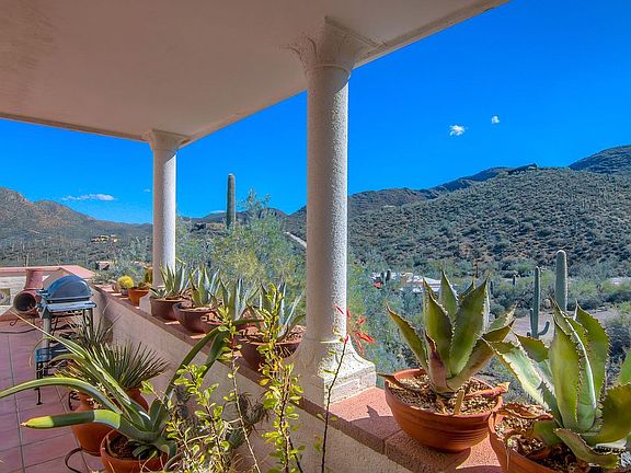 Come home to beautiful mountain & city views from this classic Tucson Mt burnt adobe territorial home in desirable Gates Pass, with two view decks & two patios nestled on the saguaro studded lot. Owner upgrades (see full list under documents) include beautiful tile flooring in the living areas & kitchen. New HVAC system too! This is a great home for entertaining with view decks, patios, & spacious dining & living areas. 3 bedrms/2 baths plus a cozy den/office with fireplace. There is a large finished lower level space which is not heated or cooled at present but would make a great guest suite or studio. The large garage space also has a workshop area. Wildlife abounds in this mountainside neighborhood adjoining Tucson Mtn Park yet just minutes to Downtown, UA & the new Caterpillar HQ