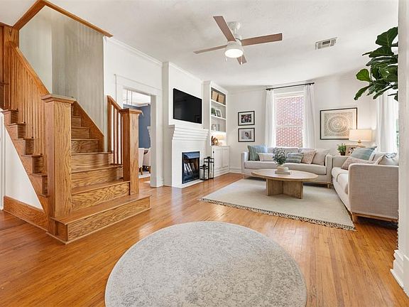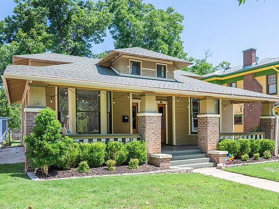 This charming 1.5 story is located on a quiet street in a friendly neighborhood, close to Downtown Oklahoma City. You are greeted by a large front porch and porch swing that make for the perfect spot to read your favorite book. The main level has hardwood floors, three bay windows that provide great natural lighting, and a built-in bookshelf. The kitchen features a cozy breakfast nook that overlooks the back yard. Outside you'll find a large treated wood deck with mature trees that provide optimal shade. The irrigation system keeps the lawn looking beautiful all year long. Going to the neighborhood park is a breeze considering it is less than two blocks away. Don't miss out on this rare opportunity to purchase a home in beautiful Mesta Park!