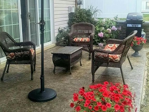 This is the greatest condo!!Great room concept has an updated kitchen with corian island,corian sinks and counters, antiqued deco finished cabinets highlighted by a gas fireplace. Sliding doors to rear newer stamped concrete patio(2015). Vaulted ceilings in all bedrooms, master bedroom is massive ....MASTER BATH IS OUTSTANDING with soaking Jacuzzi style tub, sky-lite, full vanity + loads of closets!! 2nd bedroom has 2 wall to wall closets, 2nd floor laundry area in hallway, additional storage too. Club house, pool and tennis courts are very close and will open Memorial Day. Condo fees cover the exterior of the building (not windows) and lawn care, driveways, exterior painting.