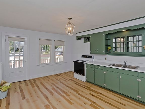 Welcome to this beautifully updated 1050+ square foot apartment, where charm meets modern convenience. This expansive home features 2 bedrooms, a welcoming living room, and a newly renovated kitchen designed for both style and functionality. The kitchen is equipped with a double basin stainless steel sink and modern sage green cabinetry that adds a touch of sophistication, along with a pantry for extra storage needs. Enjoy the elegance of gleaming hardwood floors and high ceilings throughout, complemented by impressive built-in cabinetry that showcases timeless old-world charm. Outside is your private deck, which overlooks your spacious backyard, providing a perfect retreat for relaxation. Additional amenities include a one-car garage and inclusive rent that covers heat, hot water, water, sewer, trash removal, lawn maintenance, and snow removal. This apartment offers a perfect blend of classic allure and contemporary comfort, making it a true haven to call home.