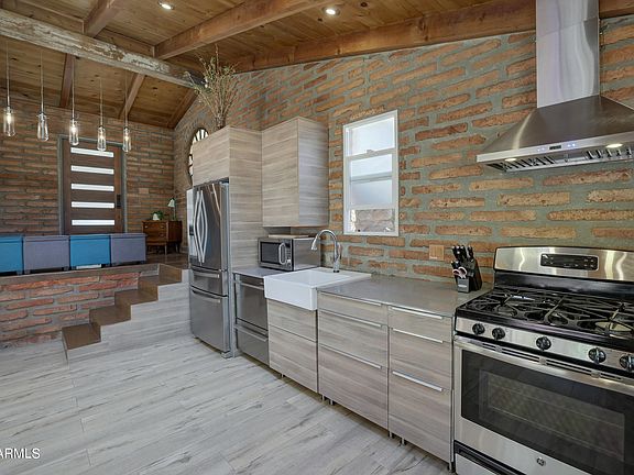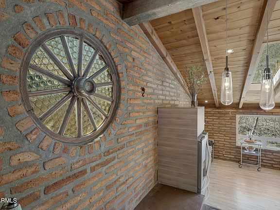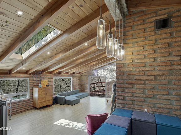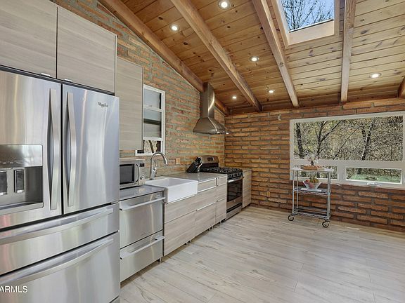 Welcome to majestic Oak Creek Canyon where beauty and history reside. Be awed by this rare creek front property. Own a piece of history believed to be built by a member of the Purtymun family. This glorious 3 Bedroom, 1.5 bathroom home is constructed of solid adobe brick and blends a mix of rustic with modern. The home interior was remodeled in 2014, new engineered wood flooring throughout, custom cabinetry and upgraded SS gourmet appliances. The primary bathroom is spacious and features a large steam shower, modern vanity, skylights and heated tile floor! The heart of the home features abode brick wood burning fireplace with warming alcove, vaulted wood plank and beam ceiling , skylights, and picture windows for captivating views of the creek below.. The peaceful primary bedroom offers raised platform bed with custom built in bedside lights and convenient storage. The pictures windows give amazing Red Rock and Oak Creek views. Open the windows and experience the flowing waters and rustling sycamore leaves lulling you to sleep day or night. The secondary bedroom is private with convenient platform bed, skylight to soak in the starry sky. The 3rd bedroom can be used as a den or study and has an ensuite powder room and interior laundry room. The laundry room even comes with a dutch door so you can let in the clean air while you wash your clothes. The living room also has double french doors that open to the walk out deck where you can entertain or have a quiet moment enjoying the nature around you. With just over 9,000 sq ft, the lot has several points of view and conversation areas, swing in the hammock, sit fireside with friends or go down the rock ledge stairway to swim in the flowing creek. Conveniently located a short distance from the historic Indian Gardens Market and Bistro Deli. A short drive to Uptown Sedona with shopping, restaurants and hiking galore! Newer metal roof, HVAC system, gas range for the cooks who love to cook with gas and clean Sedona well water. The possibilities are endless here for nature lovers, hikers, and perfect for those peaceful getaways. Perfect second home chances are you will want it be your primary residence once you step inside! Come experience the magic of 615 Oak Trail!