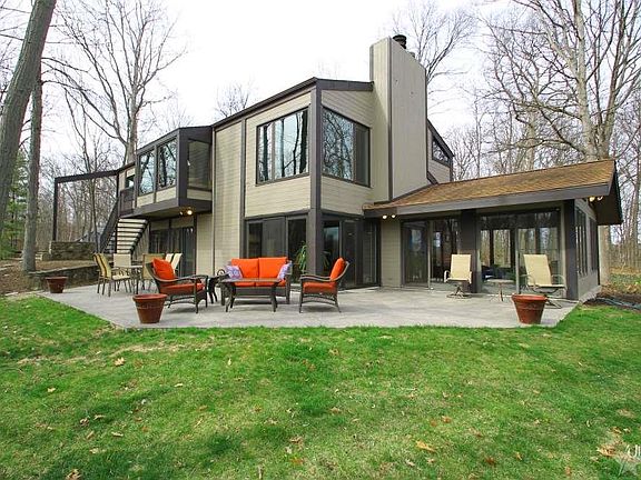 Gorgeous Custom Built Contemporary Home On The Best Lot In Woodmont. Designed By Jim Sherbondy & Custom Built By George Lengacher, This Must Be Seen To Be Appreciated! Delightfully Open Floor Plan With Unusual Carved Redwood Dividers Separating Dining & Family Rooms. Site Built Spiral Staircase Provides Access To The Upper Level Where You'll Find 4 Bedrooms, Including A Huge Owners Suite With Panoramic Windows For A View Of The Wooded Lot & Pond. An Open Kitchen With Island, Built-In Appliance Center & Pantry. Storage Abounds Everywhere With Tons Of Space For Everything You Have & Can Imagine. Large Open Breakfast Room/Atrium With Soaring Vaulted Ceiling & Skylights Leads To A Roomy Yet Cozy Den With Built-In Cabinets, Shelves & Desk. Nearby Is The Guest Suite With Generous Bedroom, Private Bath & Walk-In Closet. Feel As If You're Relaxing In The Woods In The 4 Season Room With A View Of The Peaceful Pond. Finished Basement With Wet Bar, Rec Room & Lots Of Storage. Access to Pufferbelly Trail. This Home Has Been Remodeled In Recent Years With Tons Of Updates. See Entire List Attached Online.