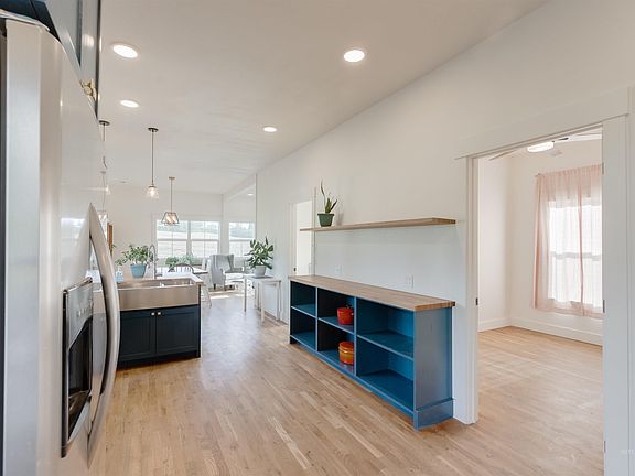 Charming single level early century home. Professionally remodeled: stripped down to the studs, new wiring, Pex plumbing, sheetrock, custom kitchen cabinets, and diamond coat siding all on top of a new foundation. Enjoy the open floor plan from your kitchen with oak butcher block counters, deep under counter farm sink. Dining flows into living room with full height 9.5 foot ceilings, detailed accents, bright natural light with a bank of new south-facing windows, and silky-smooth solid oak flooring. New deck for additional outdoor entertainment. There are two efficient bedrooms with new west facing windows. In addition, the contractor added a primary suite with marble bathroom counter, detailed finishes, and a slider access to the outside. Call your favorite realtor to view this today!