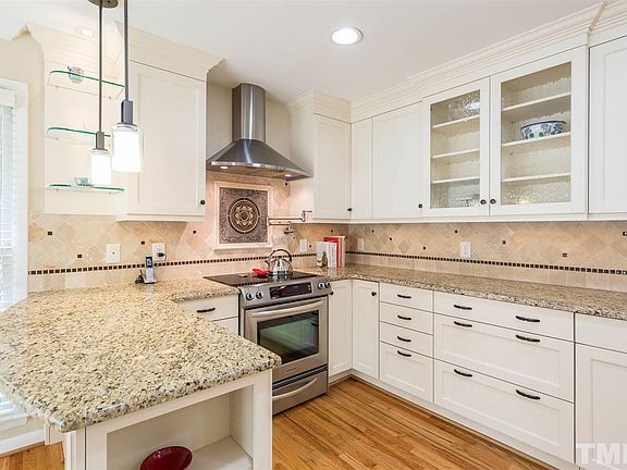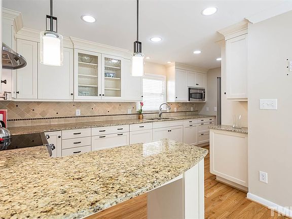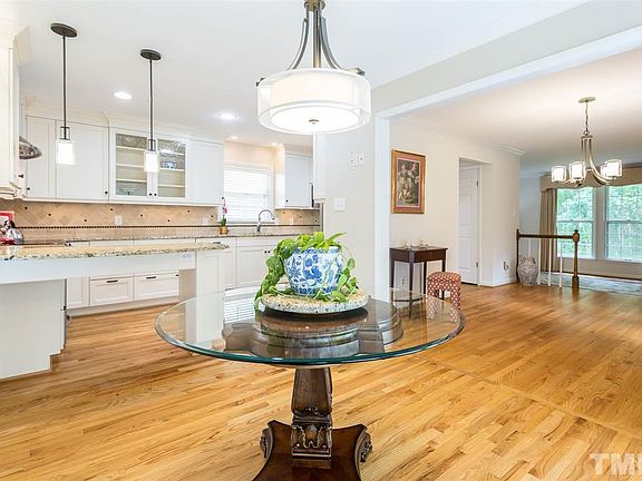 A home where you'll always have space for family and entertainment: gourmet kitchen, dining, living, & family rm w/gas fireplace, 4 FULL baths, patio & a huge yard. Once it's time to retreat, your massive owner's suite will be all you need. The walk-in stone spa shower feels like an oasis below vaulted skylights; and the custom closet, vanity and relaxing sitting area with nature view are all the respite you need. Located in South Durham's sweet spot; minutes from I-40 gives easy access to the Triangle!
