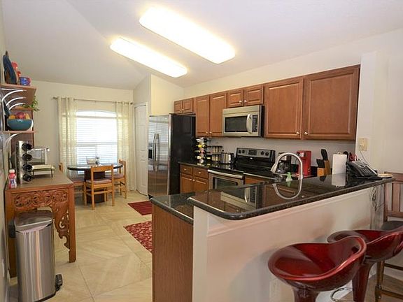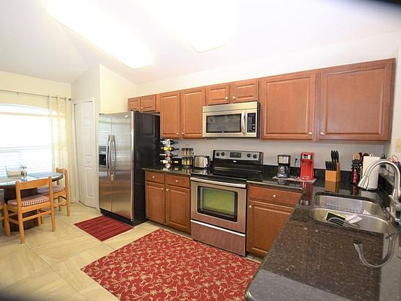 This is a gorgeous 3 bed 2.5 bathroom home with loft in the exclusive golf community of Highlands Reserve. This Lennar built Belmont model has been totally refurbished and is ready for you to move in. In 2016 a new AC unit, pool heater & water softener were installed. The kitchen and bathrooms were refurbished with new cabinetry, granite worktops and in the kitchen stainless steel appliances were installed. There is new wooden flooring throughout the ground floor and new carpet upstairs. The large master bedroom is downstairs with a spa like bathroom and walk in closet and the remaining 2 bedrooms and loft ( which could be used as a 4th bedroom) are upstairs. The large kitchen overlooks the formal dining area and the family room with soaring ceilings and a fireplace. From the Dining room you go onto the sunny pool deck with a good size lanai. The pool was resurfaced in 2016 also and overlooks the fenced in back yard . This home is walk in ready.. it is being sold unfurnished... the appliances and wall mounted TV in the main living area will remain. It is rare that a home like this, with these upgrades, at this price comes on the market.. it won't last long... bring your buyers. Highlands Reserve is an exclusive golf community close to shops, restaurants and Disney.