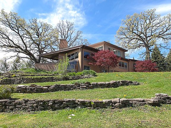 Mid-century modern 3 level on a terraced acre lot. Surrounded by 100 year old Oaks and lined with Evergreens this place will surely spark the naturist in anyone. Frank Lloyd Wright will come to mind when walking through, tons of windows in every room and a view that goes out for miles. Full gourmet kitchen with Viking range & hood and Subzero refrigerator. Lower level constructed with preformed concrete to house a heated 4 car garage, bedroom with a full bath, and mudroom. Huge covered patio will host any large gathering rain or shine. Indoor & Outdoor Fireplace, walk out roof. . .too much personality to list, must see.