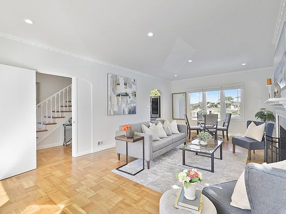 An amazing 4 bedroom and 5 bath home is nestled in the foothills of Crocker Amazon. Being on a corner lot, you are greeted with an abundance of natural light as you enter and walk into the living room. The bright and airy room maintains it's charm with detailed crown molding. The staircase leads to the top level which boasts 2 enormous bedrooms and 2 baths, including an ensuite in the primary bedroom. The bedrooms provide plenty of closet space with 3 closets within each of the upper bedrooms. The home has a total of 5 bathrooms, 4 bedrooms and an additional bonus room in the lowest level. You must come and see to appreciate all the space and versatility of the home. Conveniently located walking distance from the local park, and a short drive to 101 and 280.