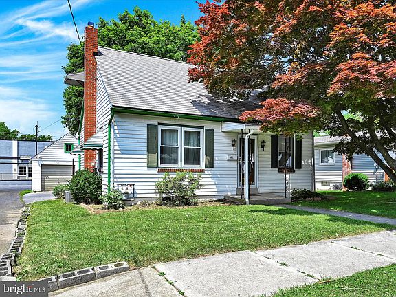 Close to Rails to Trails! Cute 2 bedroom, 1 bath Cape Cod style home on a quiet street with a nice yard and mature trees. Country kitchen with a large breakfast nook equipped with stainless steel appliances. First floor primary bedroom and updated bathroom, living room and dining room with arched openings and hardwood floors. upstairs has 1 bedroom and a bonus space that could be used as a great office space or additional bedroom. Lower level has potential for additional family room and bedroom. Laundry room in lower level with front loader washer and dryer. Central Air and heat, natural gas. Two + car detached garage with attic space and 2 parking spaces behind the house. Short walking distance to the rails to trails system. Being sold AS IS.
